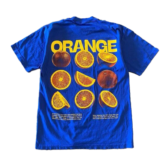 Ce t-shirt bleu électrique ne passe clairement pas inaperçu. Avec son imprimé XXL d’oranges juteuses et son lettrage jaune vif, il te plonge dans un univers vitaminé et rétro. Le contraste intense entre le bleu profond et les visuels fruités donne un look audacieux, parfait pour booster ta tenue en une seconde. Conçu dans une coupe droite confortable, ce t-shirt allie style graphique et good vibes. Porte-le avec un jean délavé, un bob et des sneakers pour un outfit 100% feel good et assumé. Parce qu’un zeste de fun, ça fait toujours du bien.